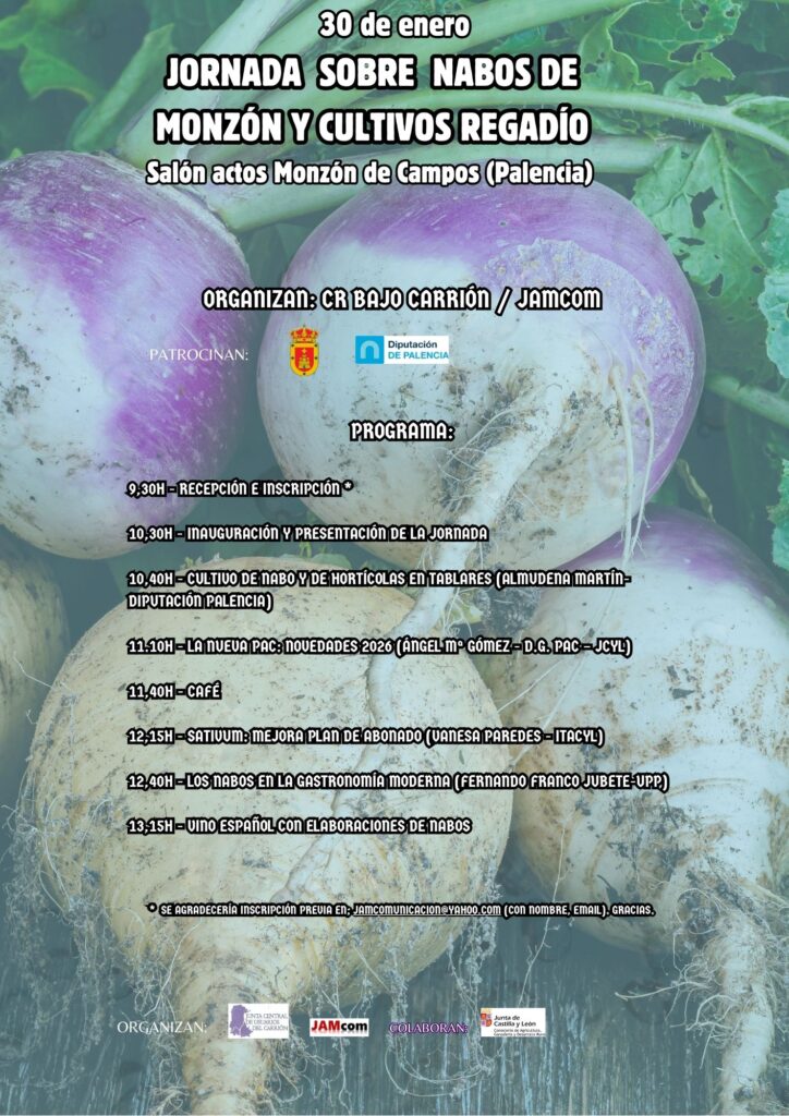 Las hortícolas, la nueva PAC y la gastronomía nabera protagonizan el encuentro Monzón de Campos acoge el próximo viernes, 30 de enero, una ‘Jornada sobre nabos y otros cultivos de regadío’ en la que, aparte de los detalles agronómicos, también se hablará de las novedades de la PAC para 2026 o del plan de abonado […]