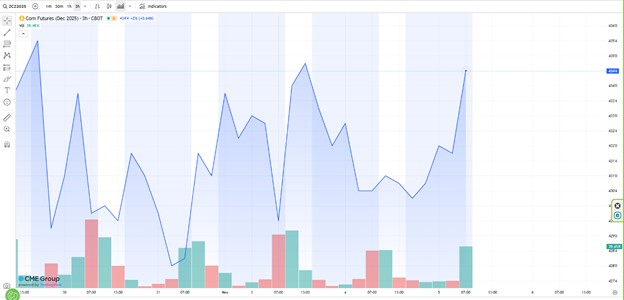 En los futuros del maíz en París, para los contratos de marzo de 2026, el precio semanal se fijó en 189,5 euros/Tm el 5 de noviembre, repitiendo el precio de hace una semana.