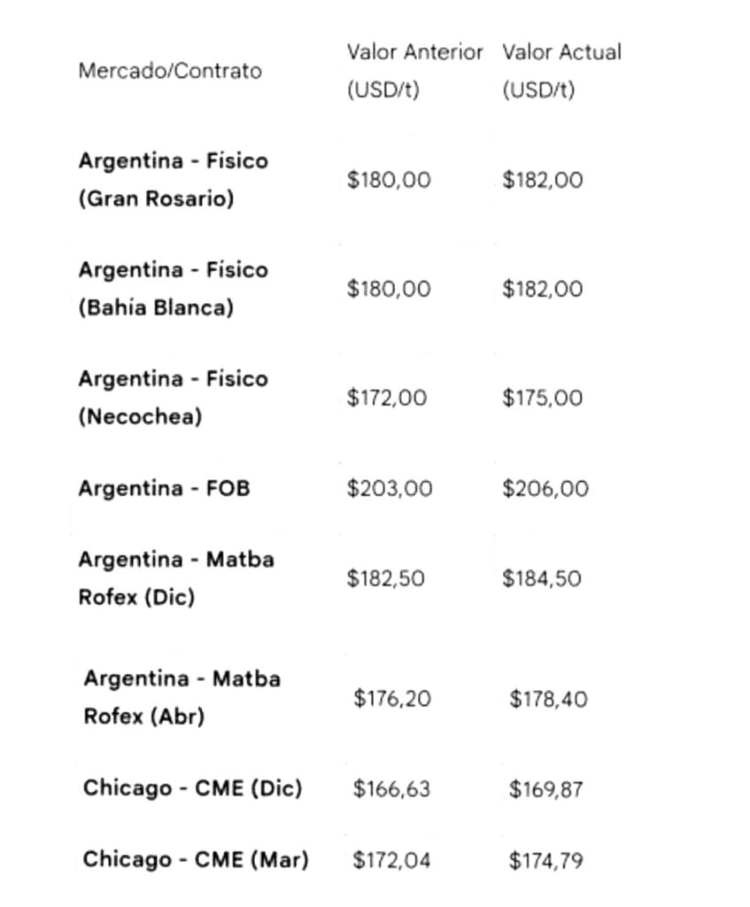 La evolución de precios en los mercados físicos y de futuros refleja esta tónica positiva, con subidas generalizadas tanto para el grano de origen argentino como para el estadounidense.