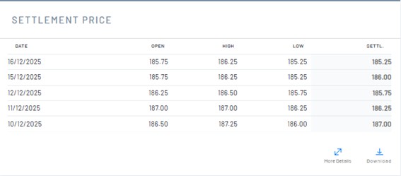 En los futuros del maíz en París, para los contratos de marzo de 2026, el precio semanal se fijó en 185,25 euros/Tm el 17 de diciembre, 1,75 euros menos que hace una semana.
