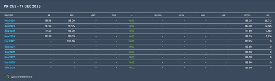 Para los contratos de marzo de 2027, el precio ha bajado esta semana también 2,5 euros hasta los 197,25 euros/Tm.